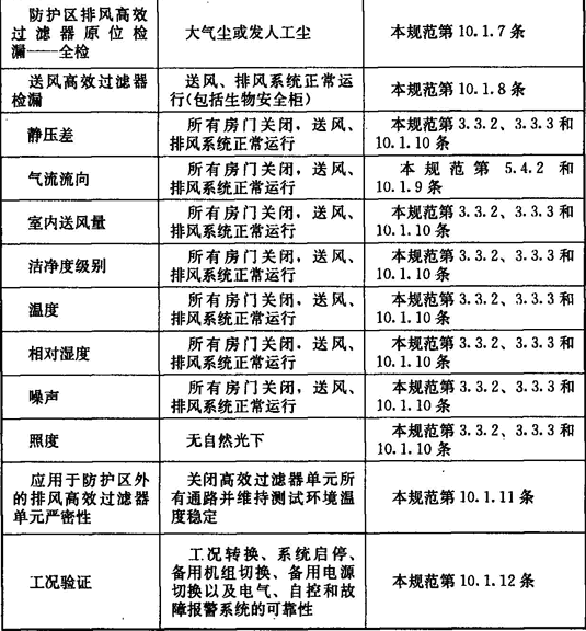 10.1.10 靜壓差、送風(fēng)量、潔凈度級別、溫度、相對濕度、噪聲、照度等室內(nèi)環(huán)境參數(shù)的檢測方法和要求應(yīng)符合現(xiàn)行國家標(biāo)準(zhǔn)《潔凈室施工及驗(yàn)收規(guī)范》GB 50591的有關(guān)規(guī)定。